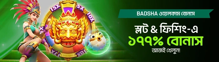 আমাদের 'Badsha ওয়েলকাম বোনাস'-এর সাথে সৌভাগ্যময় রিলগুলো স্পিন করুন এবং লাকি ফিশ ধরে ফেলুন! আজই আপনার ফার্স্ট ডিপোজিট করুন এবং আপনার গেমিং এক্সপেরিয়েন্সকে আরও উন্নত করতে ১৭৭% বোনাস ক্লেইম করুন এবং আশ্চর্যজনক জয়ের স্বাদ নিন!